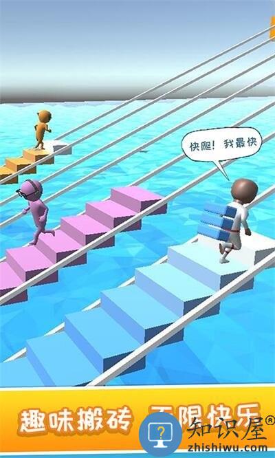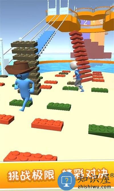 这是款休闲又解压的搬砖争霸单机游戏。游戏中玩家需要控制角色不断收集与自己颜色相同的砖块,然后用砖块快速的搭建楼梯前往下一个平台。这里你需要运用合理策略在自己的收集砖块的同时,还要不断的妨碍他人阻止他人收集砖块的速度。当然选择正确的路线也很正要,正确的路线可以让你减少搭建楼梯的数量,使你更快的到达终点。你还在等什么,快来加入这场工人搬砖争霸大赛中来吧,看看谁才是真正的搬砖达人!