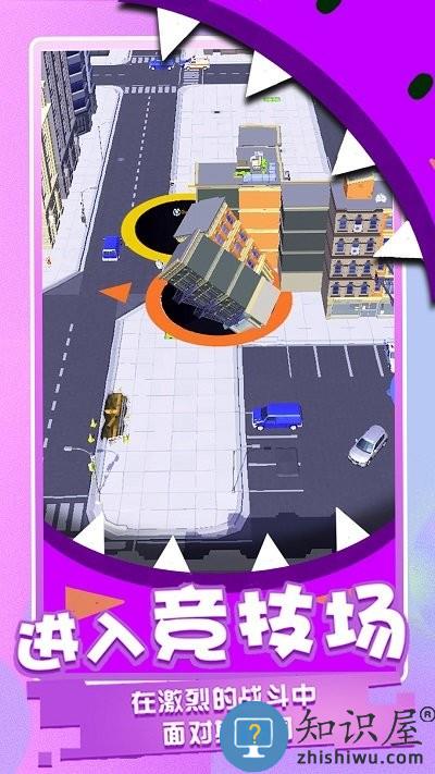 1、通过吞噬场景中的建筑和道具来扩张自己,根据大小选择你要吞噬的物品