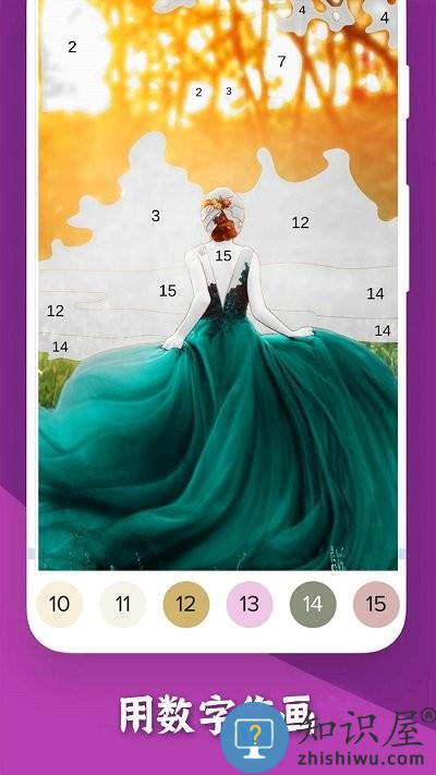 ·玩法简单容易上手,只需用手指点击图画中色号相对应的色块,轻轻一点即可填色,无需纸笔