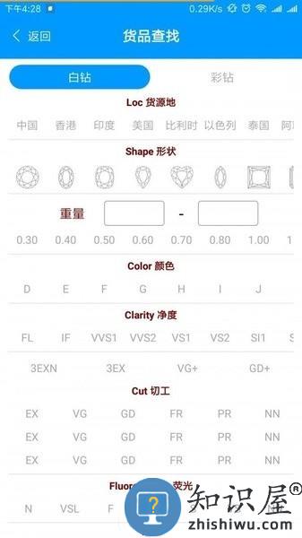 在线搜索成品,可以查看到成品信息,白钻或彩钻都可以在app内查找到;
