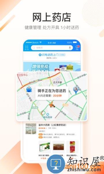 闪电购药――64城市支持1小时闪电送药服务,超时赔付。