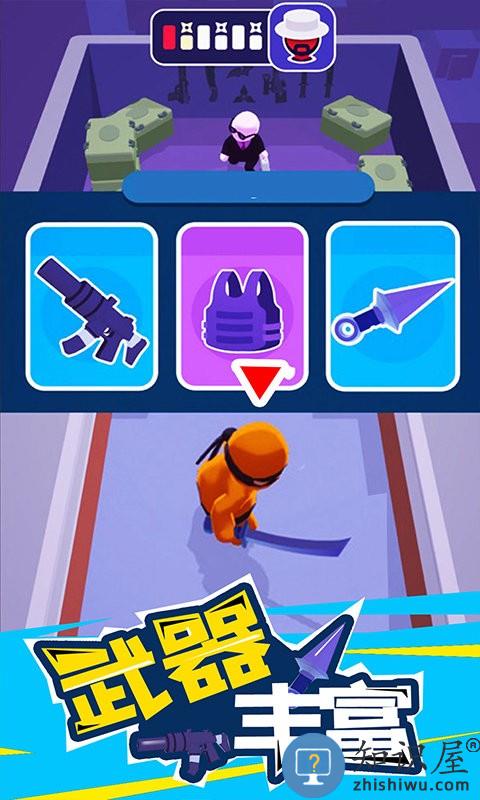 ·随着探索,玩家会在闯关过程中收到支援,可以获得武器、技能、补给品,便于更好的完成暗杀任务。