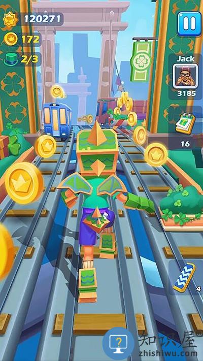 2、使用滑板在地铁之中进行跑酷,利用跳跃或者滑行等各种操作躲避障碍