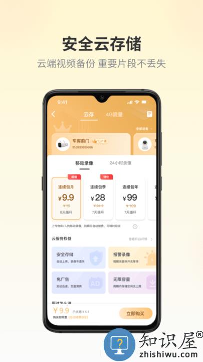 2、录像云端高效、安全存储,多种套餐可选。
