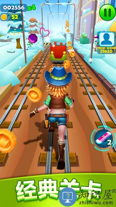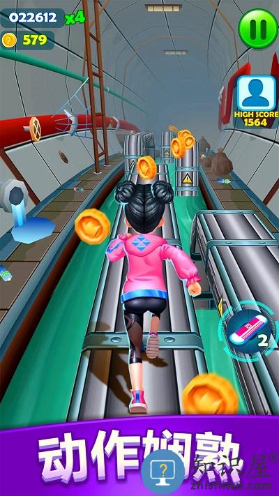 这是一个跑酷冒险游戏。你需要通过自己指尖的跳跃滑动躲避障碍、获得游戏道具,获得胜利。在游戏中,你可以体验到城市中熟悉的场景,犹如穿梭在车水马龙的大街小巷!尽可能快速地躲避迎面而来的火车,选择你喜爱的角色在地铁中使用滑板冲浪。帮助露西、凯文躲避警察的追捕并获取高分。