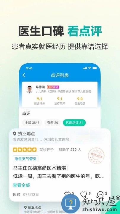 * 在线挂号:覆盖深圳儿童医院、香港大学深圳医院、南山人民医院、北京大学深圳医院等数千家三甲医院,可预约号源超过200万;