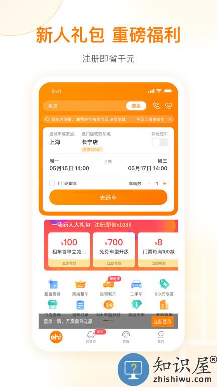 新客注册,即享最高1088元租车出行大礼包。