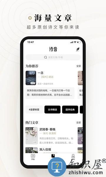 【海量诗词】丰富的诗词库,涵盖中外名家名作;也可以上传创作的原创诗词,成为认证作者。