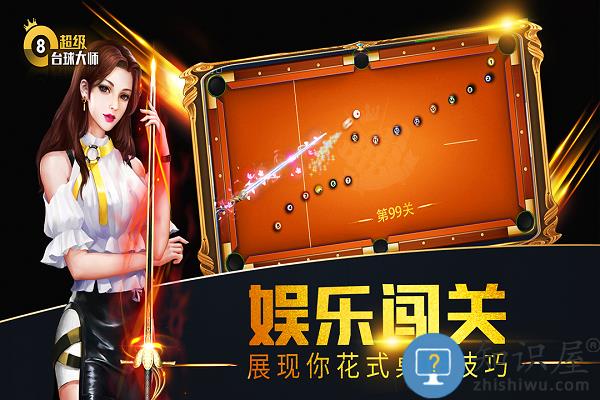 超级台球大师除了可以与在线玩家对战,同时还提供了丰富的,充满了挑战乐趣的海量关卡游戏内容等你来闯关挑战