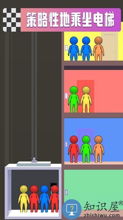 2、五颜六色的画面风格,灵活应对不同类型的电梯分类,不断掌握正确的分类方法和技巧,才可以让不同的人放置在相对应的电梯当中