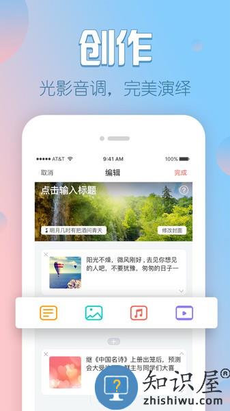 每篇文章可容纳100张图片或音视频文件,有千套编辑模板可供挑选。随意填写文字内容,自由定义文字格式、背景音乐和本地视频。1分钟就能创作出精美文章!写游记、段子、搞笑视频、秀美照、晒萌娃、秀恩爱、秀肌肉…时刻记录生活里的精彩!