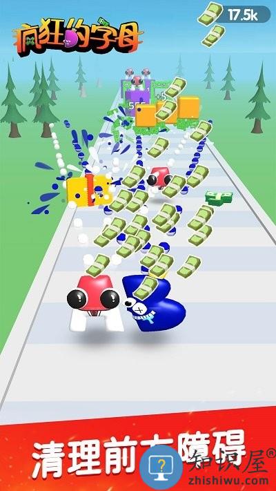 3、疯狂的字母的路上有不同的金币,尽量多收集,这样可以在商场里买一些物品。