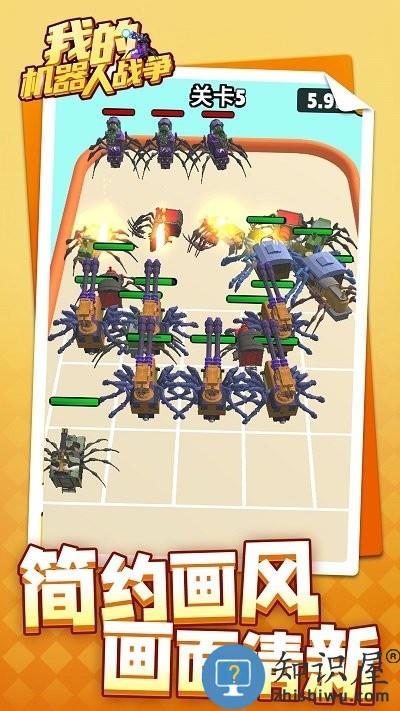 1、玩法新鲜有趣的冒险闯关小游戏,玩家需游戏中扮演机械蜘蛛,并在关卡途中不断增加机械蜘蛛的数量