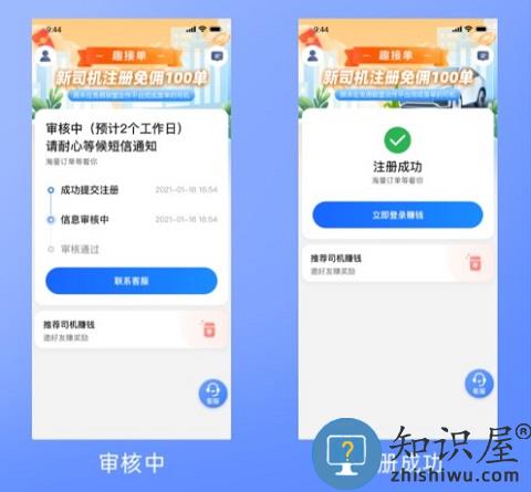 提交材料后,预计2个工作日内可以看到审核结果,审核通过后你将收到短信通知,登录司机端就可以出车赚钱啦!