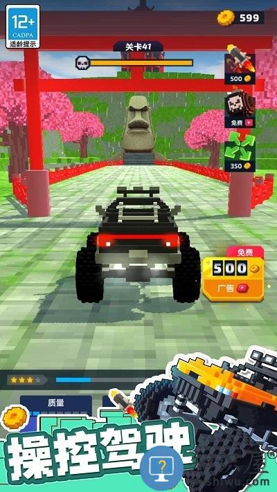 ·可以挑战在各种各样的像素场景中驾驶高性能车辆,飞驰在赛道之上,撞击摧毁面前的巨大怪兽