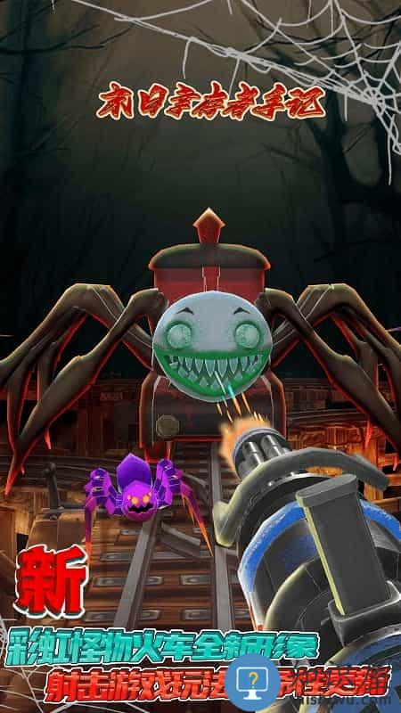 《末日幸存者手记》是一个以恐怖蜘蛛为主题的幸存者射击游戏。你在一个被彩虹蜘蛛入侵的村庄里。你的任务是试图通过火车在这个危险的村庄中生存——这是仅有的一个交通工具。你需要乘火车去车站收集武器和必需品,但火车的噪音吸引了彩虹蜘蛛怪物。你可以从车站的武器库中挑选并射击所有的蜘蛛怪物,收集怪物的蛋来引诱强大的蜘蛛首领。小心怪物蜘蛛,它们吃完后可以变成任何形状。