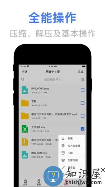 支持复制、移动、分享、删除、重命名等多种基本文件操作。