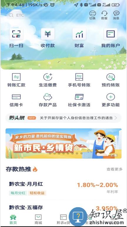 3.融合黔农e贷,支持线上贷款、自助还款、预约贷款等功能。