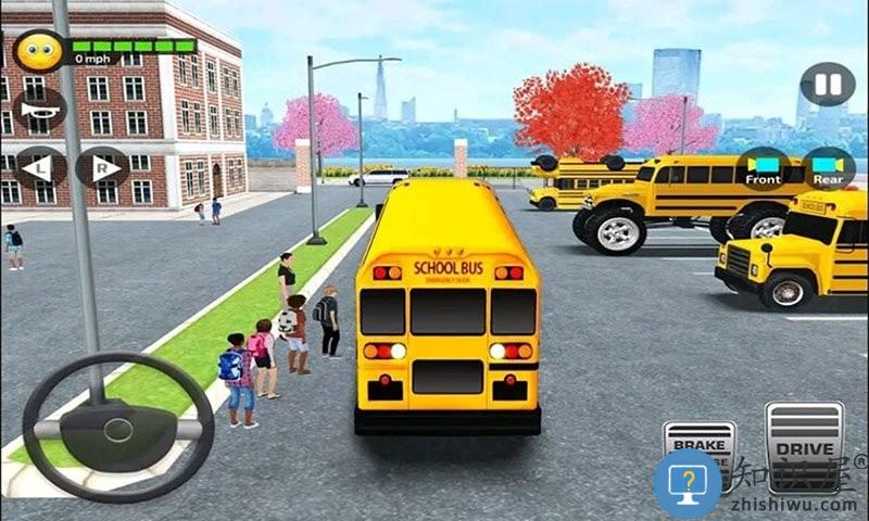 5.测试你的驾驶技能,在城市中运行时间和交通,乘坐学校学生的公交车站并拖放到他们的上学时间;