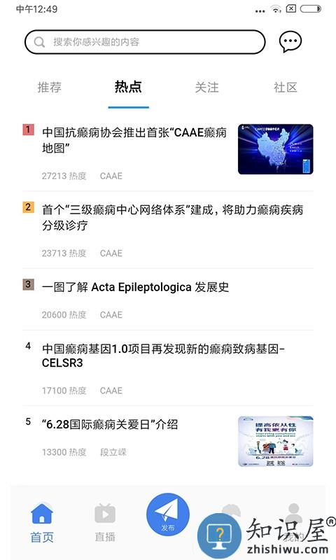 这是一个癫痫生态圈的专业平台,系统分为推荐、热点、关注、社区、直播、协会、个人等版块,同时还有癫痫地图、三级癫痫中心网、CAAE会员系统、基因解读中心、监测中心等工具供使用。