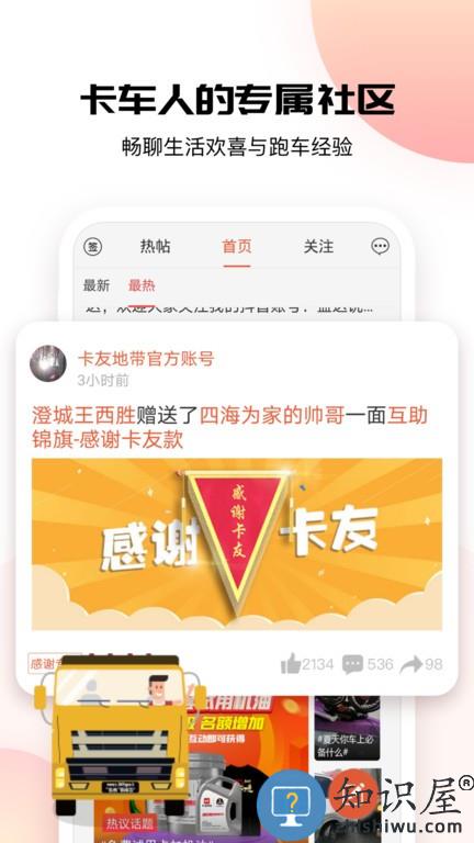 货车司机交流经验、分享感受的聚集地,内容覆盖实时路况、经验交流、新闻资讯、沿途风光、卡友相会等