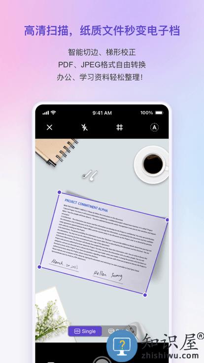 - 扫描快:只要对准纸质文件,立即完成扫描