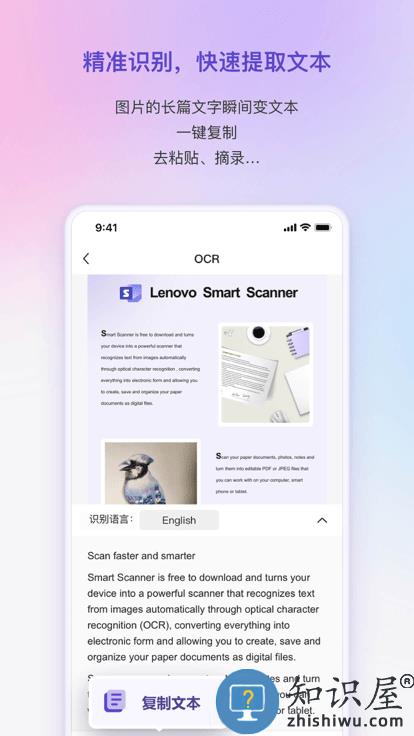 联想扫描王(Lenovo Smart Scanner)免费下载,将您的设备变成一台功能强大的扫描仪,通过光学字符识别(OCR)自动识别图像中的文字扫描您的纸质文档、照片、笔记,并将其转换为可编辑的PDF或JPEG文件,以便在电脑、智能手机或平板电脑上使用。