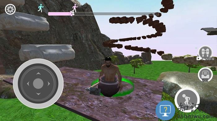 游戏开始时,你在一块岩石地里,被困在一个罐子里,从你的身体底部开始,手边只有一把大锤。