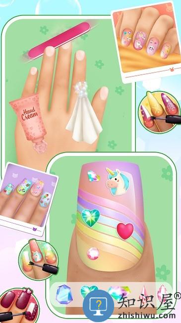 1、玩家扮演时尚美甲师,给甜心公主修剪指甲,挑选搭配颜色,制作出新款式的美甲。