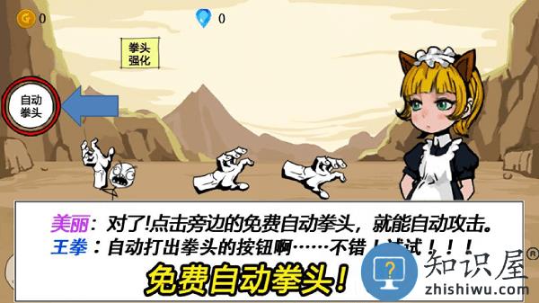 冒险文字游戏。操控你的拳头不断加点属性,疯狂挑战敌人升级,同你的对手展开激烈的格斗,灵活的躲避敌人的攻击,各种搞笑趣味的画面上演,用拳套来对抗各种敌人,带来爽快的战斗打击感体验,还有不同样式的拳头可以解锁来使用。