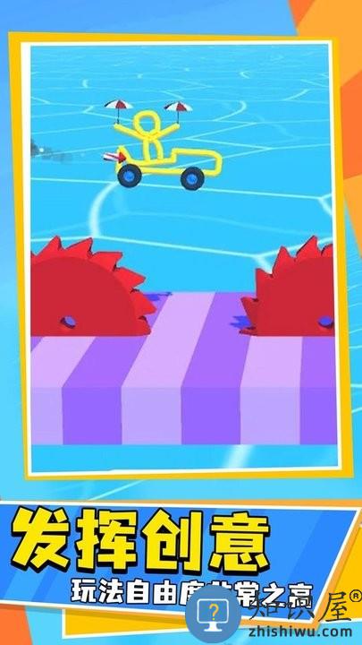 1.合理画线帮助小车通过各个障碍物来闯关,考验玩家的想象力和画画能力。