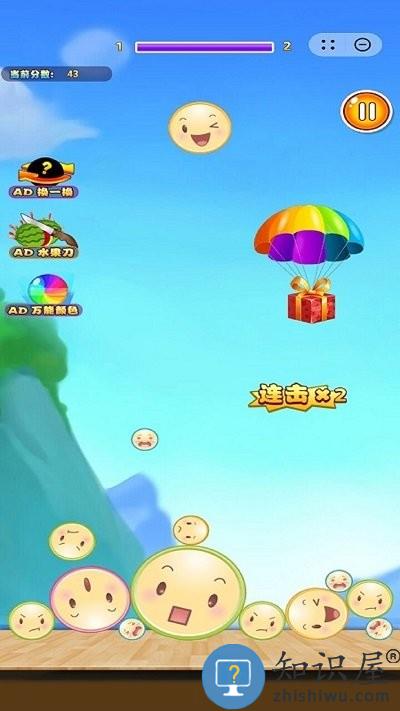 2、通过调整水果掉落的方向,让相同的水果碰到一起就可以合成,分解则正好相反。