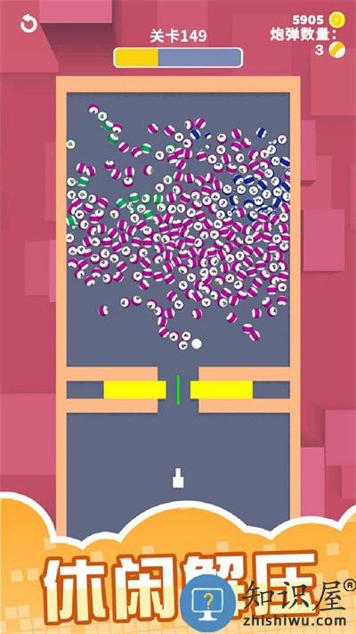 ·控制大炮射击,撞击球球,让它不断复制,在不同的场景中制作出爆炸的效果