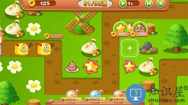 ·点击路径上的空地,用金币部署植物,或者对植物进行升级