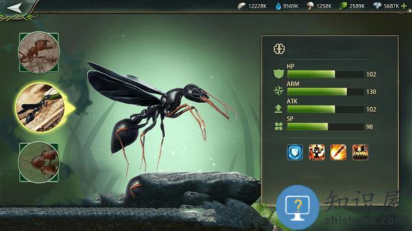 --存储大量的粮食作为你们的后勤保障,通过训练来升级工蚁的战斗能力。