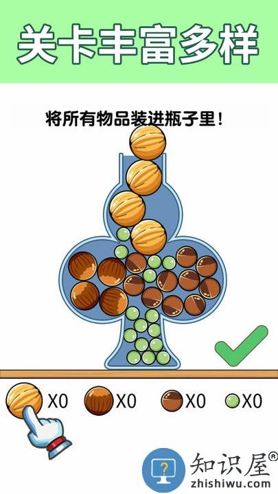 2、你控制球球的数量需要合理的利用空间,将所有小球都转入在瓶中;