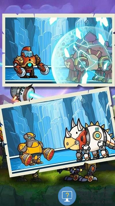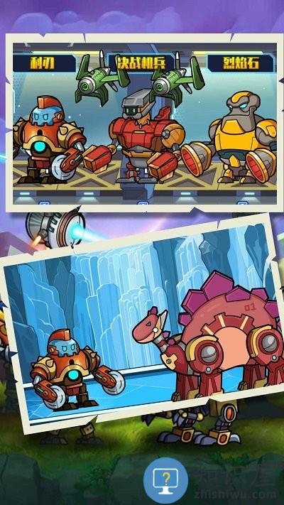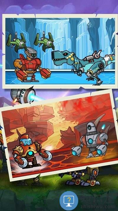 3、卡通风格的机甲战士们与机甲恐龙战斗起来,火力迅猛,让敌人连连退步。