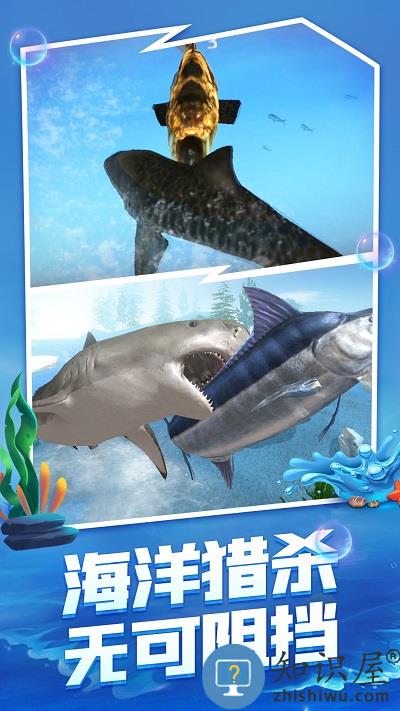 2、从最弱的鲨鱼开始,玩家就可以在游戏中自由控制海洋中的鲨鱼狩猎活动;
