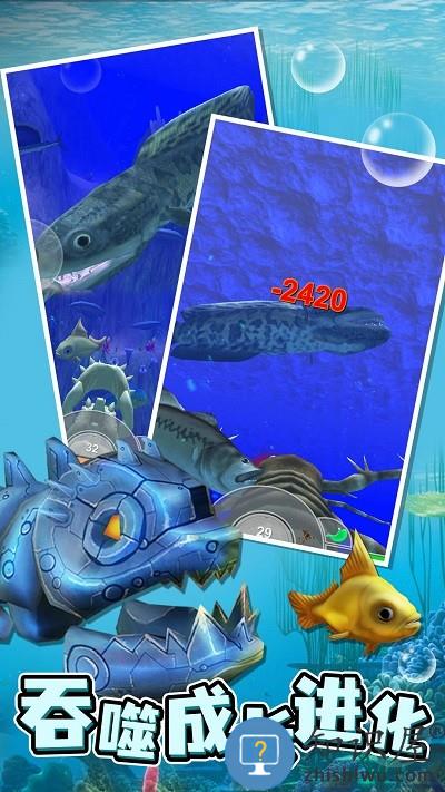 1、化身的鲨鱼在陌生的海底玩游戏,以2265各种鱼为食!成为越来越强大的海兽;