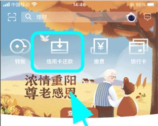 5、进入手机银行首页,点击【信用卡还款】。