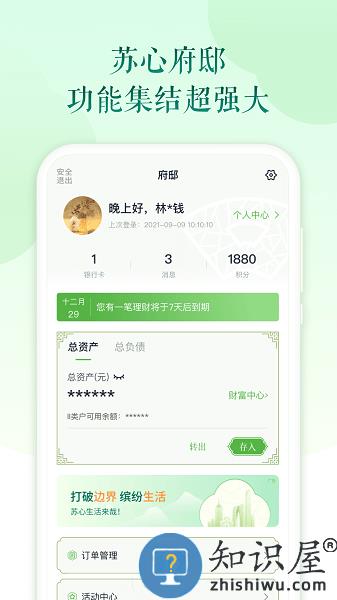 苏心府邸-个人中心、消息中心、财富中心,功能集结超强大