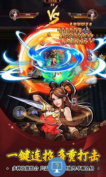 游戏的玩法虽然非常的简单,但是内容却相当的充实,曾经的隐藏武将现在可以全部使用,还有各种各样的道具随你拾取,尽情使用,实时对战勇闯三国激情互动. 梦回曾经一起经历的热血回忆,重温经典,等你来战.