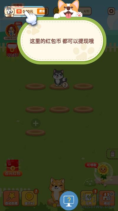 4、收集更多的小狗获得更多收益,轻松简单的玩法滑动手指就能合并养成,还有更多玩法需要你来体验.