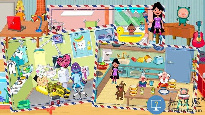 1、在卡通画风的托卡小镇幼儿园,结识朋友,体验全新生活;