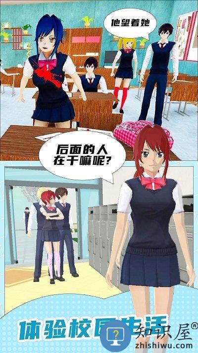 3D高校模拟游戏,模拟高中生活场景,重返校园。在游戏里面可以扮演其中角色,在校园里面进行精彩的探索,也可以谈一场甜甜的恋爱,体验一番爱情的酸臭味,还可以结交新的朋友一同游玩在校园里。还能去往不同的场景进行自己的任务挑战,快来回到学校开启一个不一样的高中校园生活吧!