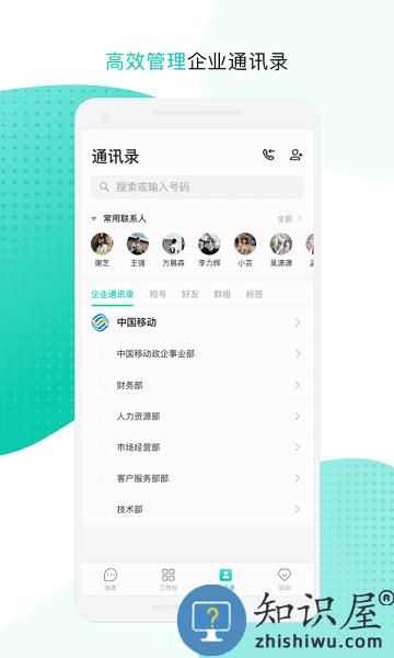 支持手机联系人和企业通讯录的全量查询,企业组织架构一目了然