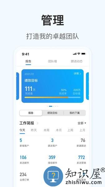销售业绩数据,客户跟进情况,一目了然;智能身份识别,业务员查看个人业绩数据,管理者查看团队销售数据。