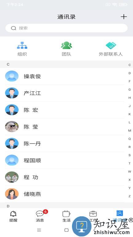 打开通讯录,查看组织和团队的各个成员信息,和同事快速沟通工作问题