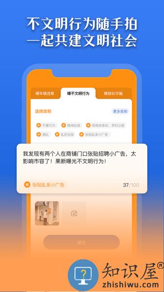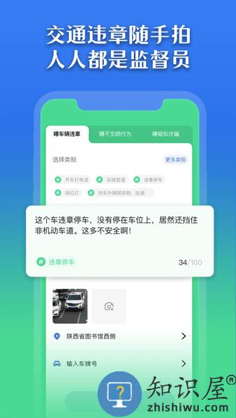 该应用提供用户拍照曝光交通违章、不文明行为等问题的功能,帮助用户对社会不良现象进行监督和举报。