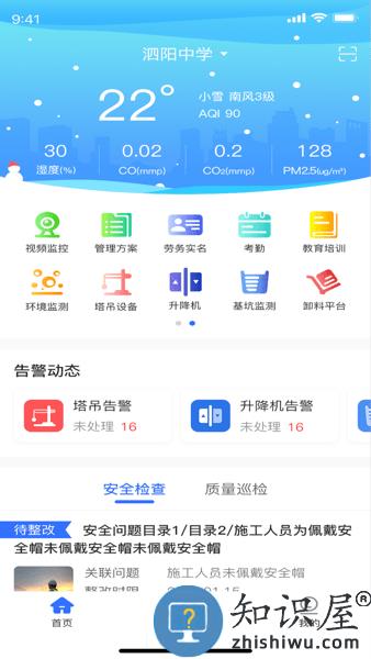 专门服务于智慧工地的应用程序,可与塔吊、扬尘、卸料平台、升降机等硬件设备联动,涵盖了质检、视频、实名认证、教育培训和考勤等方面的需求。